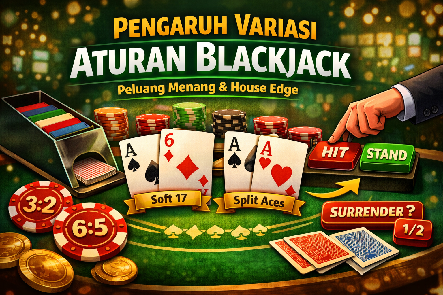 Artikel ini akan membahas secara lengkap pengaruh variasi aturan Blackjack, bagaimana aturan tersebut memengaruhi house edge, serta tips memilih meja Blackjack terbaik agar peluang menang semakin optimal.